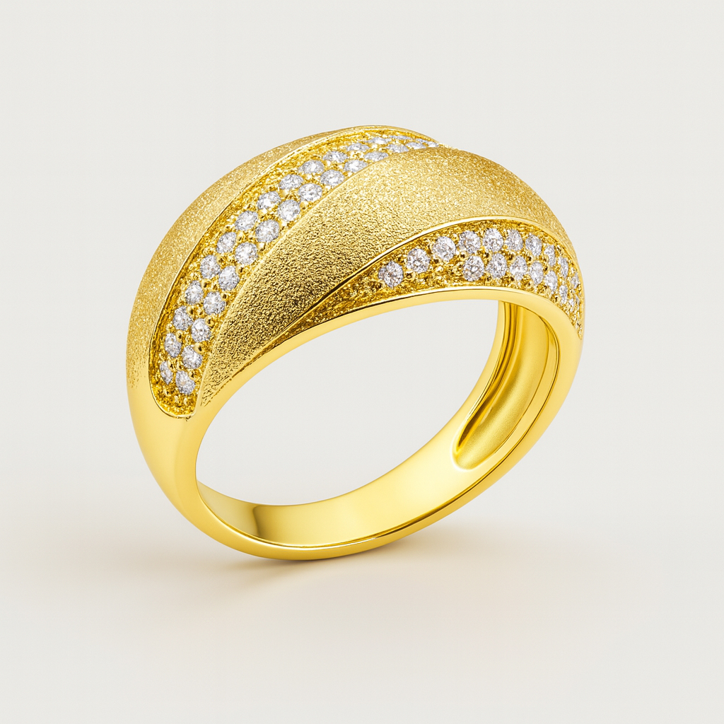 Anillo de plata bañado en oro con circonitas blancas